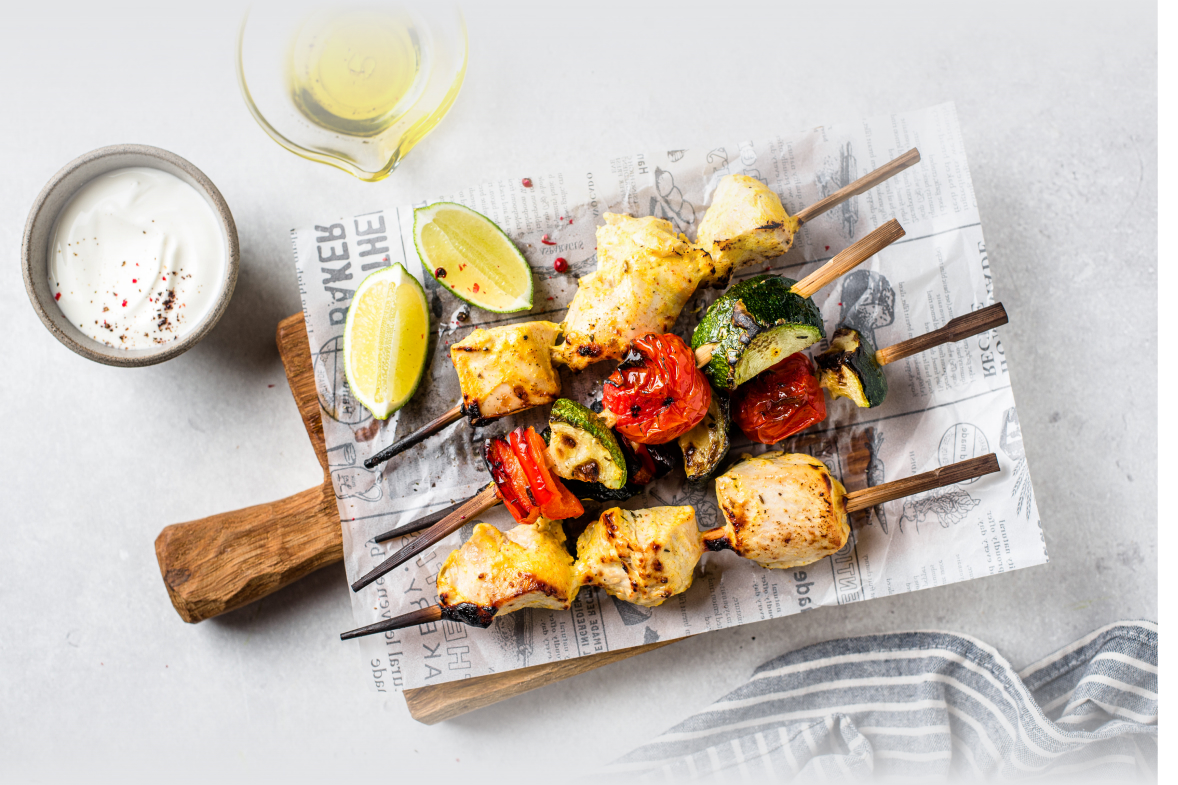 Шашлычки тандури из куриной грудки и овощей